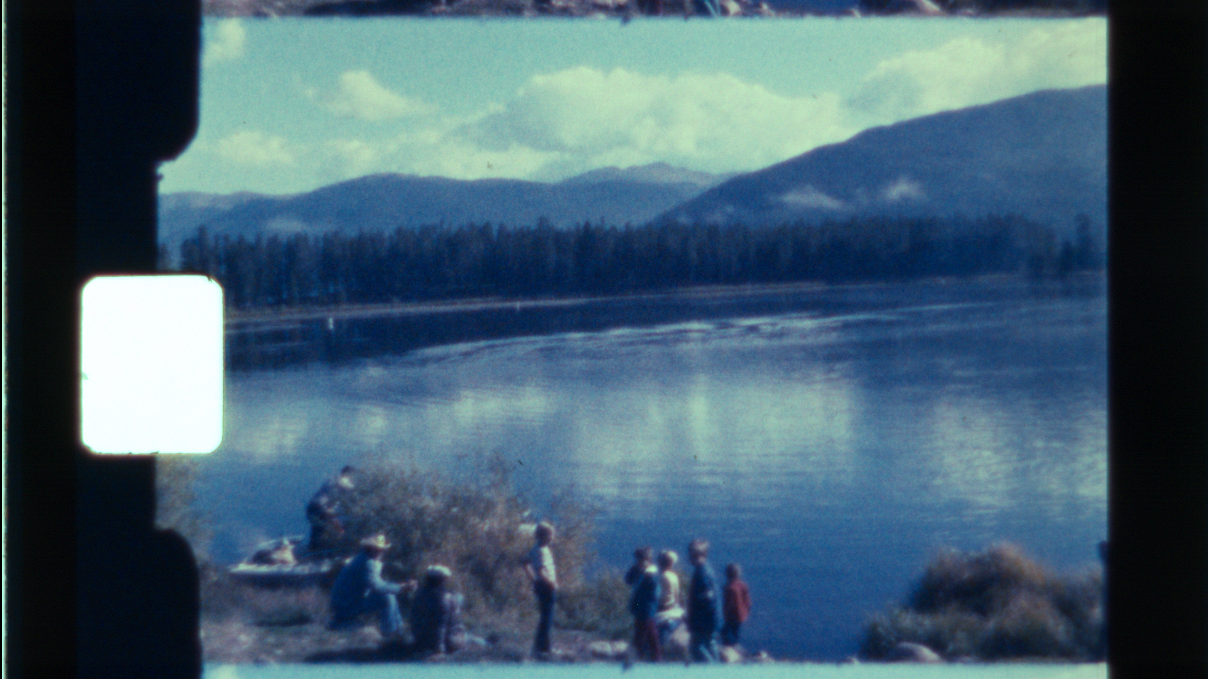 16mm variable density optical sound edge-to-edge dry scan (cropped). MAJESTIC MOUNTAINS (Home movie), 1970s.